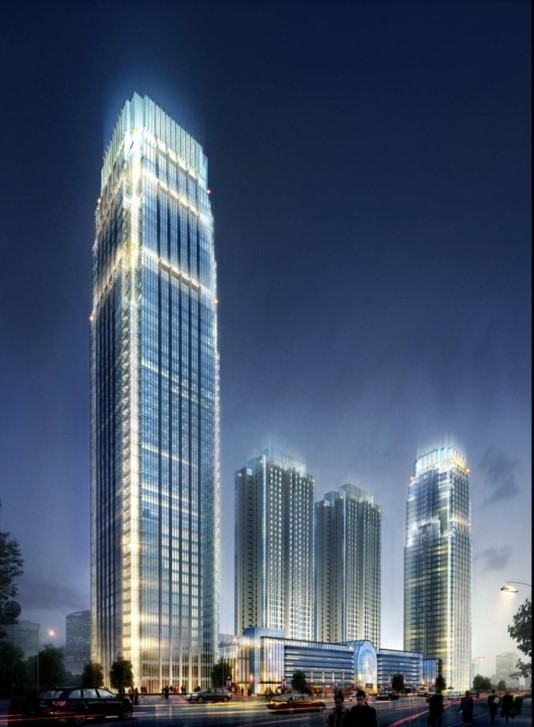 国际中心国际标准超甲级写字楼高度200米,共41层,总建筑面积7.67万平米;六星级费尔蒙酒店建筑面积5.33万