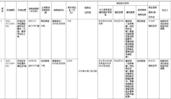 2020年4月17日上午10时,成都市公共资源交易中心以拍卖方式组织出让了两宗国有建设用地使用权,分别位于双流区东升街道迎春桥社区集体、九组,接待寺社区三组(70.0087亩)、双流区东升街道永福社区6组(66.8533亩)。